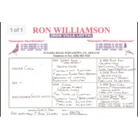 Ronnie Williamson also achieved Fancier of the Year award section (E) N.I.P.A. during the following seasons, 1990, 91, 94, 95, 96, 97, 98, 99, 00, 01, 02, these results were achieved racing against birdages of 5,000+ on a weekly basis!